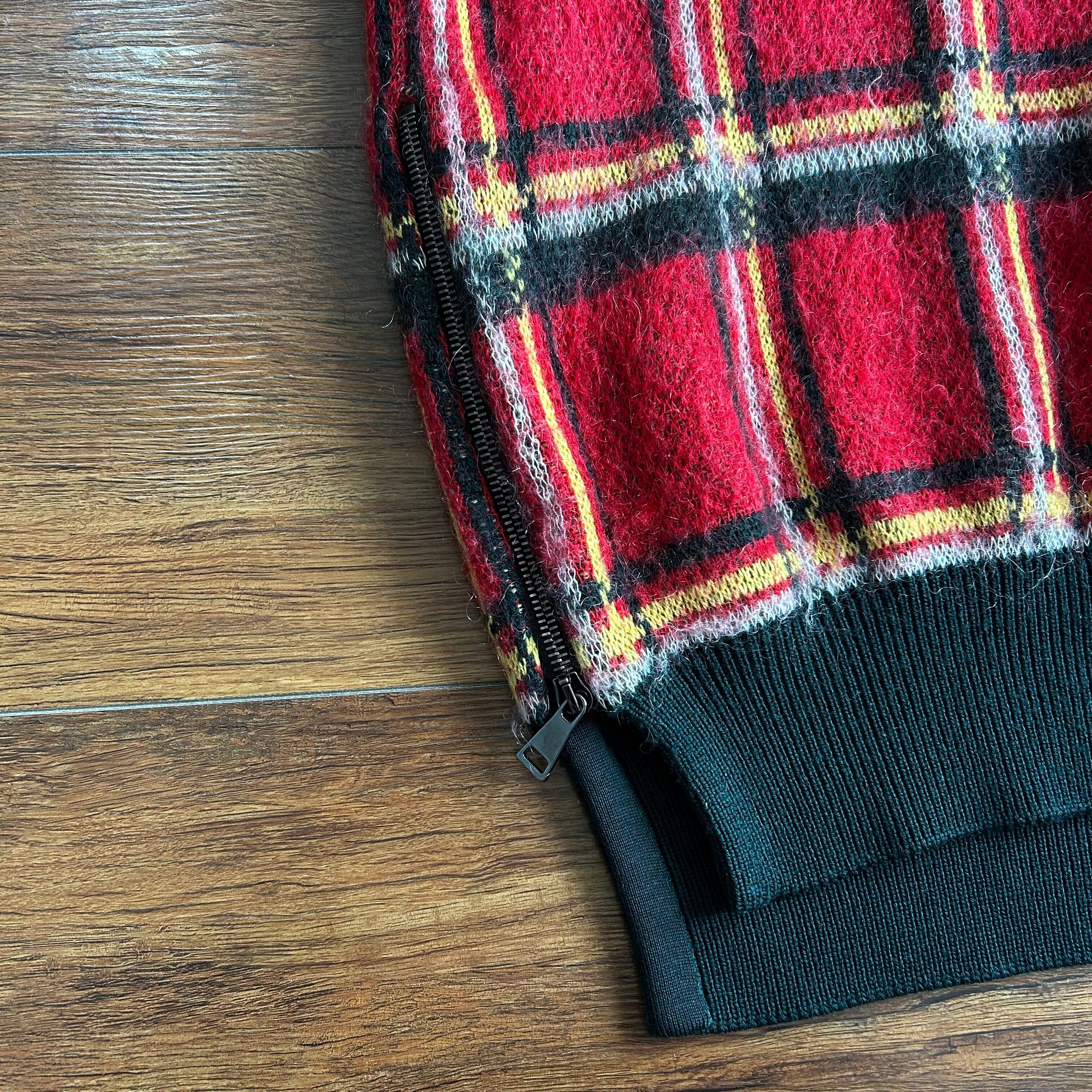 美品 MONCLER モンクレール チェック柄 ニット セーター サイドジップ モヘア トリコロール レッド/グリーン/イエロー S