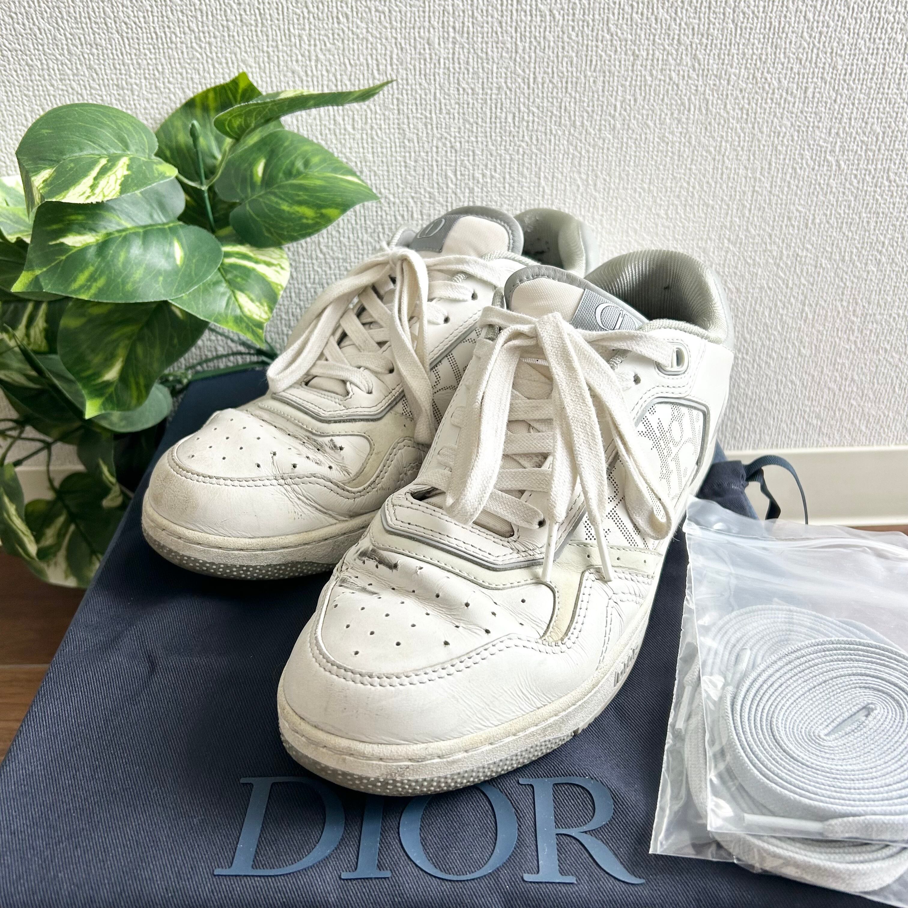 良品 DIOR ディオール B27 ロートップ スニーカー ホワイト/グレー 41 靴 ディオール オブリーク カーフスキン