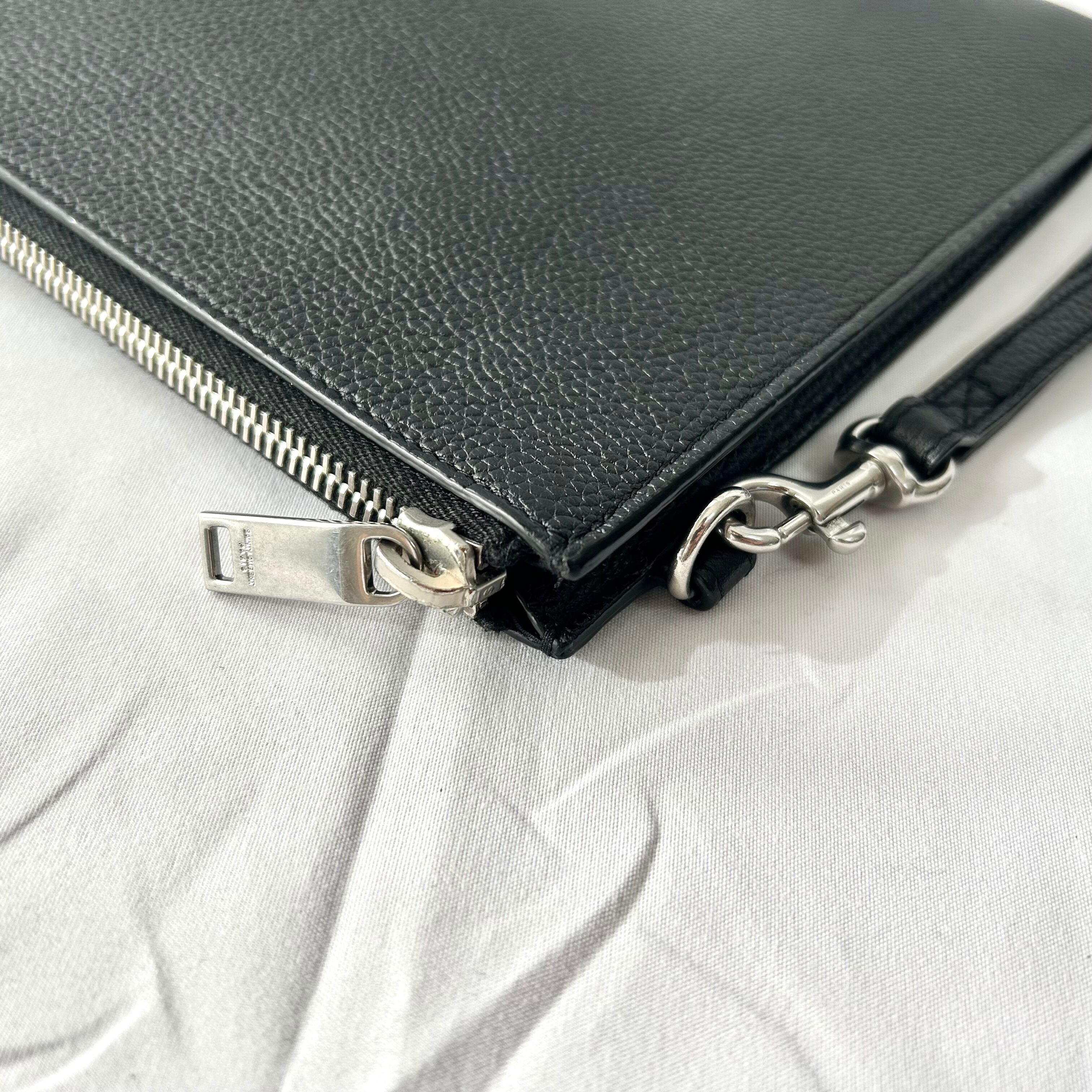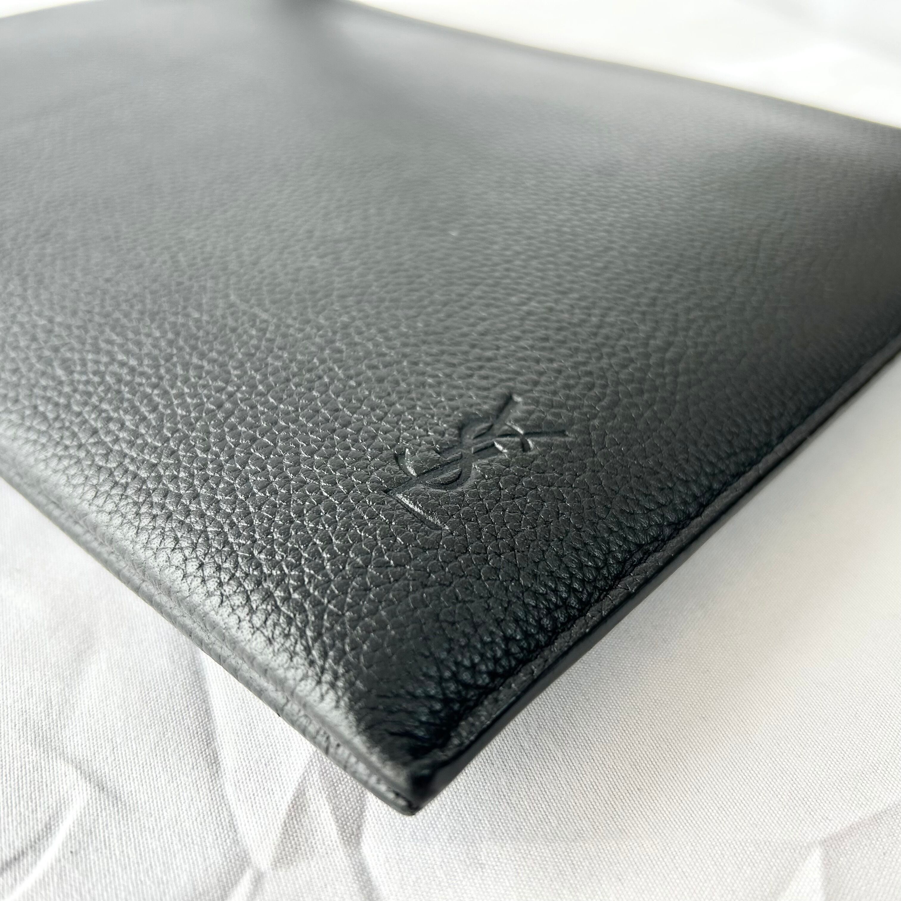 新品同様 Saint Laurent サンローラン レザー クラッチバッグ iPadケース ブラック リストレット付