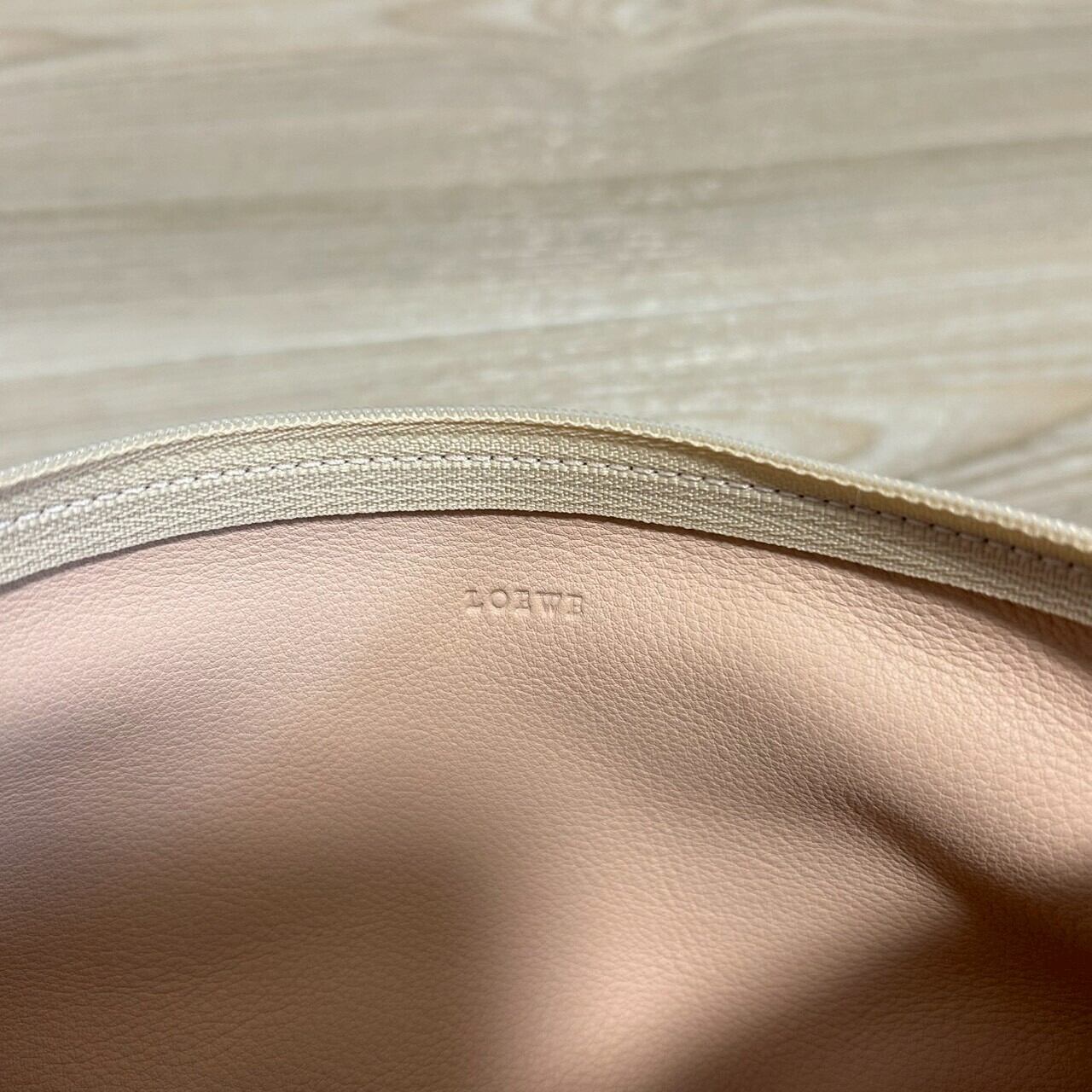 未使用ですが、保管ダメージと思われる微細な傷がございます。それ以外は特に目立つダメージはなく、非常に良好な状態です。LOEWEのアイテムをお探しの方や、上質な素材感とデザイン性を兼ね備えたポーチをお求めの方にぴったりの一品です。この機会にぜひお手に取ってみてください!
