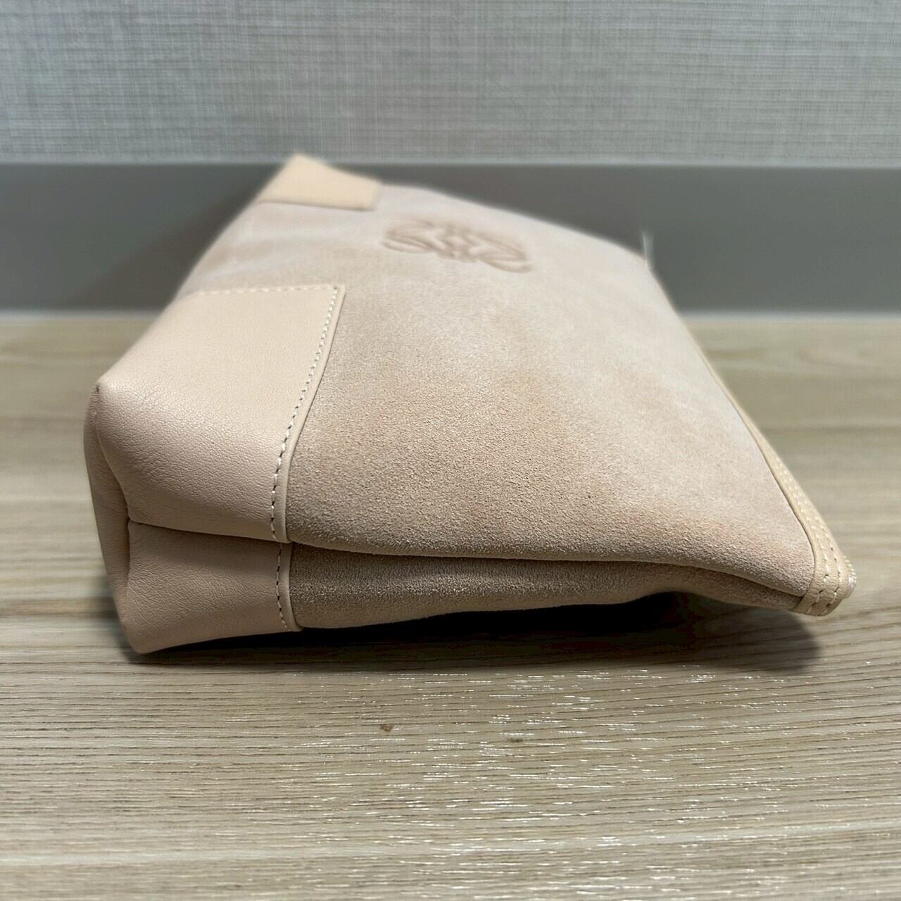 極美品 LOEWE ロエベ アナグラム ポーチ スエード×レザー ピンクベージュ コスメポーチ 化粧ポーチ