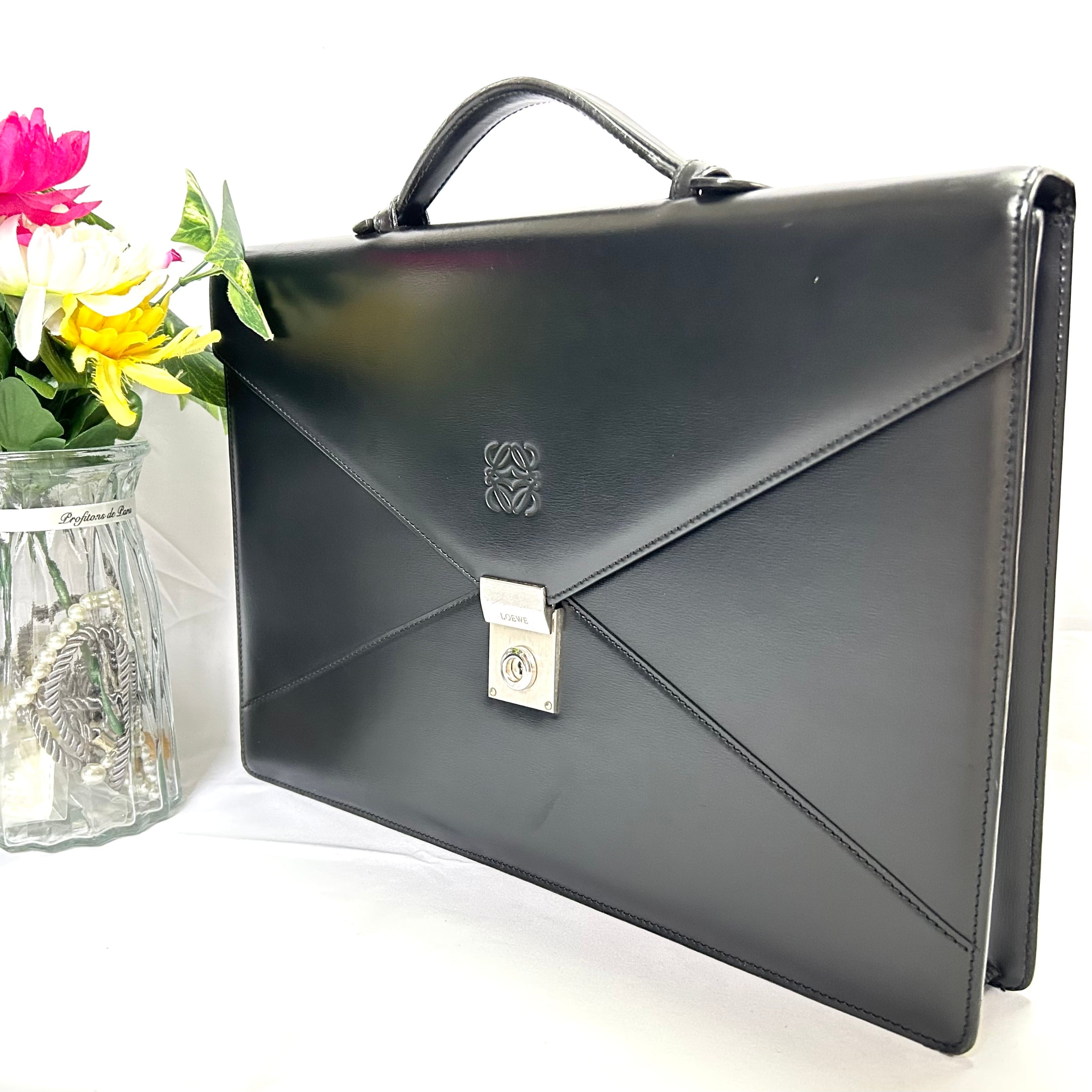 美品 LOEWE ロエベ アナグラム レザー ビジネスバッグ ブリーフケース ブラック
