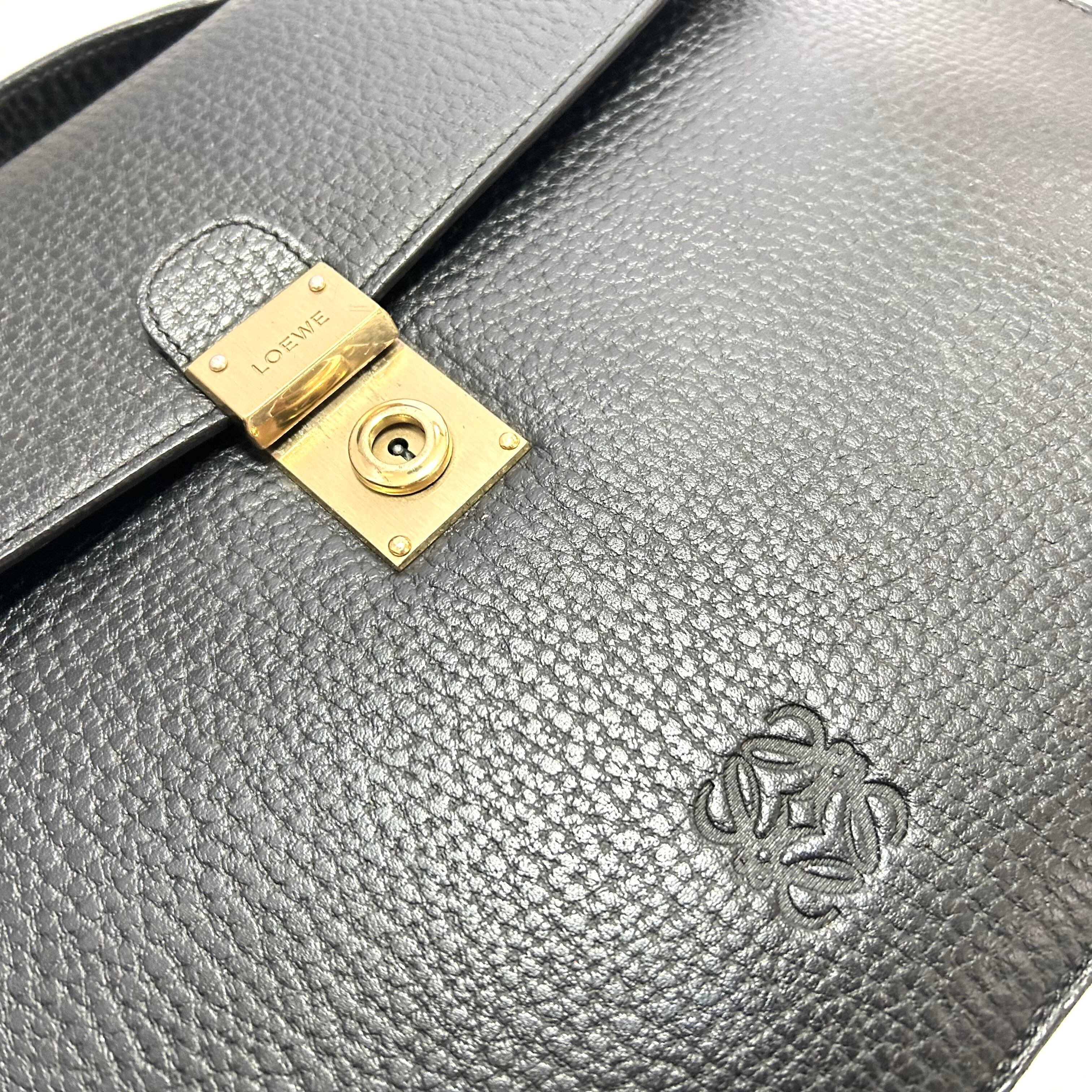 良品 LOEWE ロエベ レザー ビジネスバッグ ブリーフケース ゴールド金具 ブラック