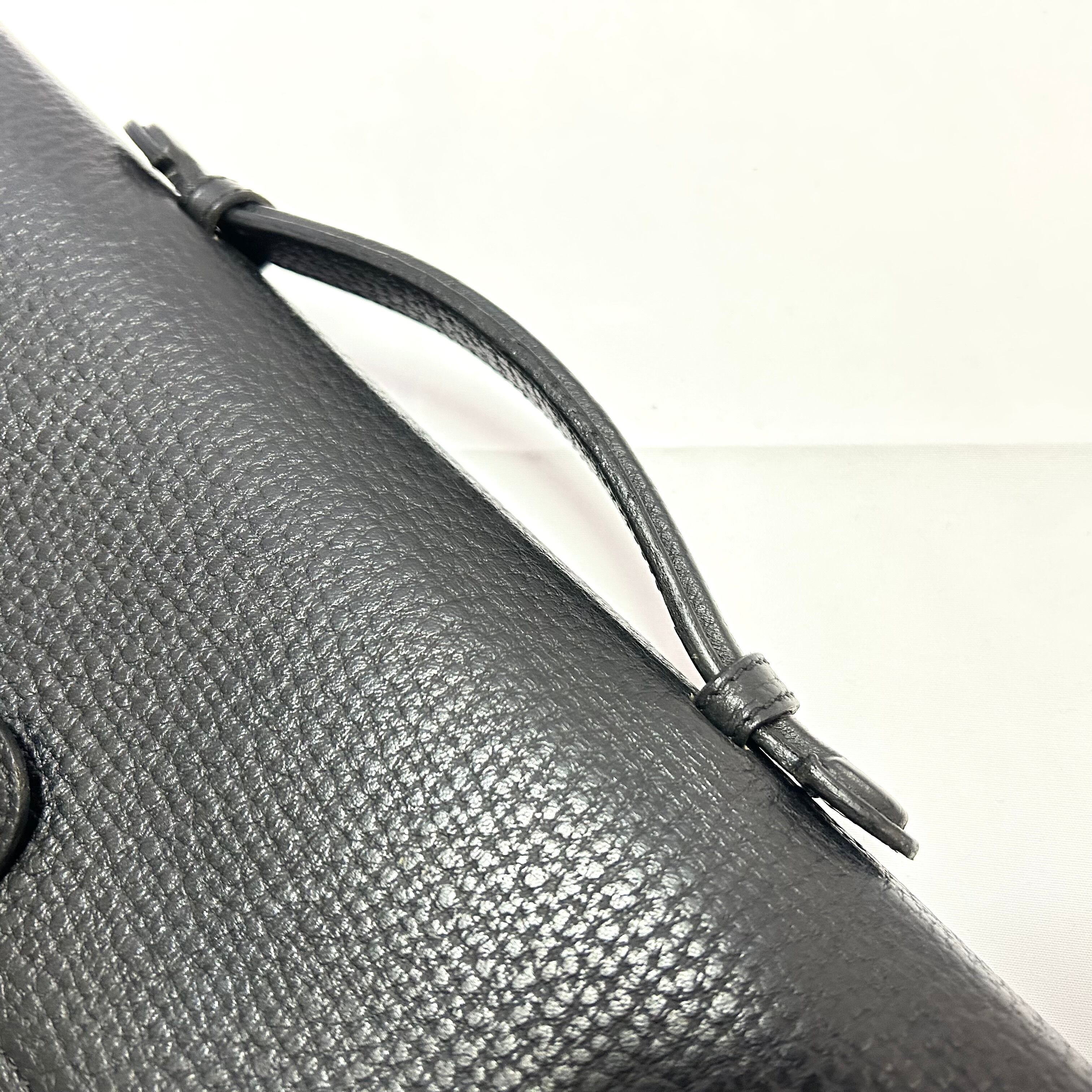 このビジネスバッグは、上質なレザーとLOEWEならではの洗練されたデザインが魅力です。シックなブラックカラーにゴールド金具が映え、ビジネスシーンにふさわしく、さまざまなスタイルと組み合わせることができるアイテムです。
