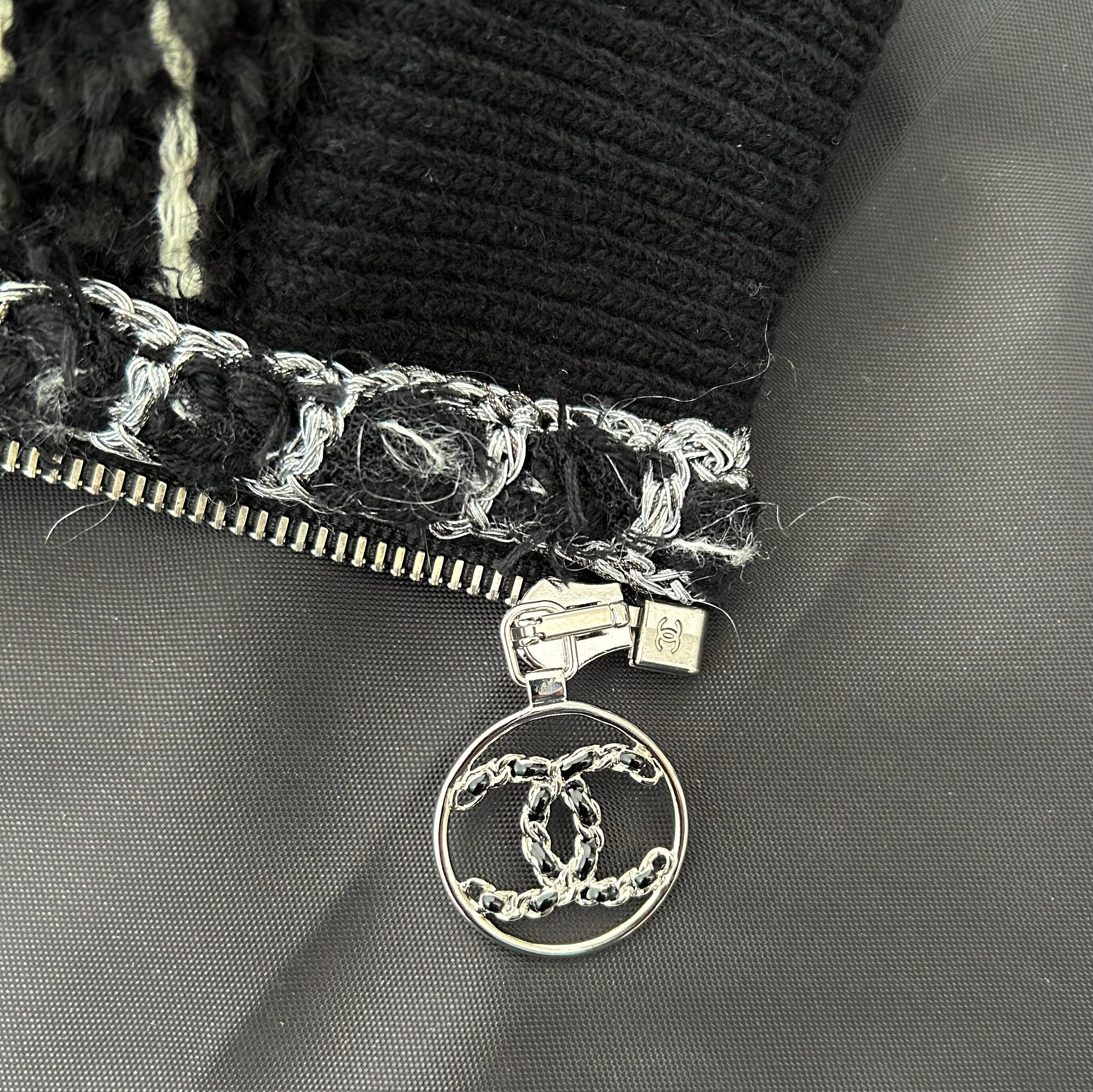 高級感漂うシャネルのカシミヤ混ジップアップブルゾンが入荷しました。ブラックカラーとシルバーチェーン、ココマークのファスナープルがエレガントでスタイリッシュな印象を与えます。デザインにもこだわり、シルエットが美しくきれいに着こなせます。デートやパーティー、ビジネスシーンなど、様々なシーンで活躍する一着です。