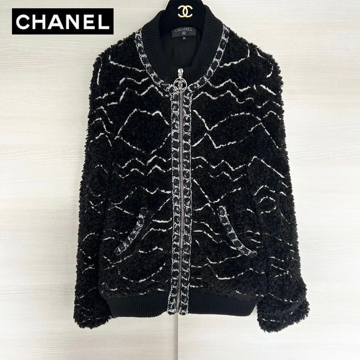 CHANEL シャネル カシミヤ混 ジップアップ ブルゾン ココマーク チェーン ブラック 36