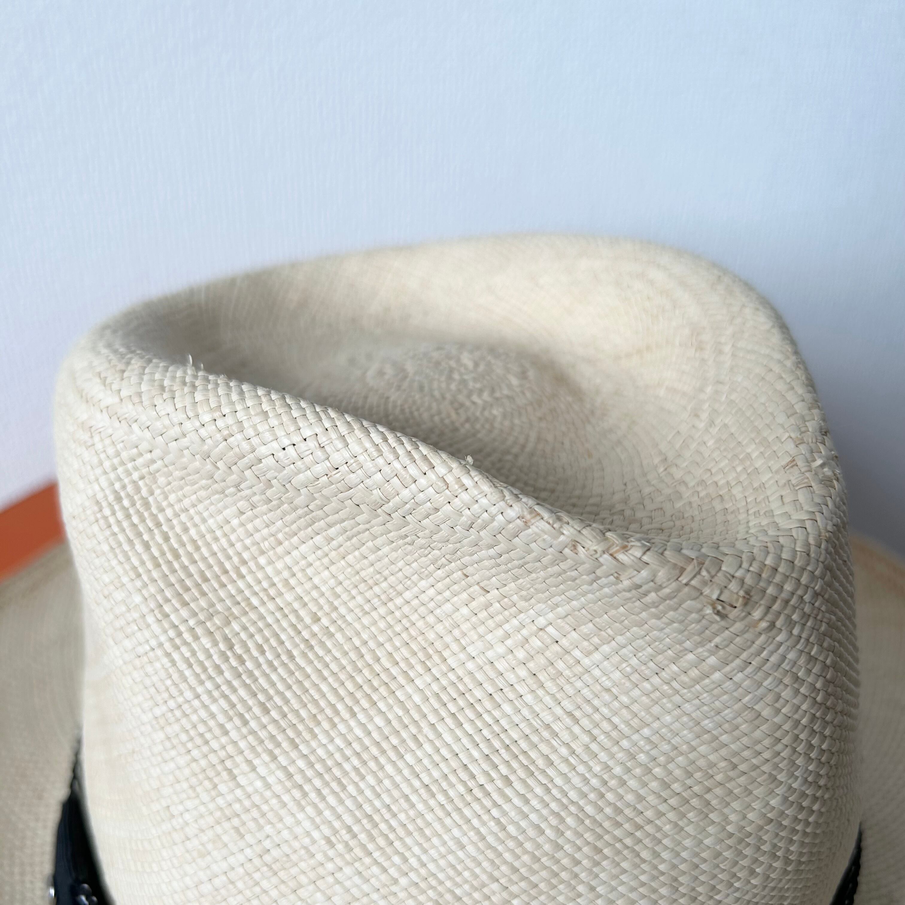 HERMES エルメス パナマハット セリエボタン 麦わら帽子 ストローハット セリエボタン 56