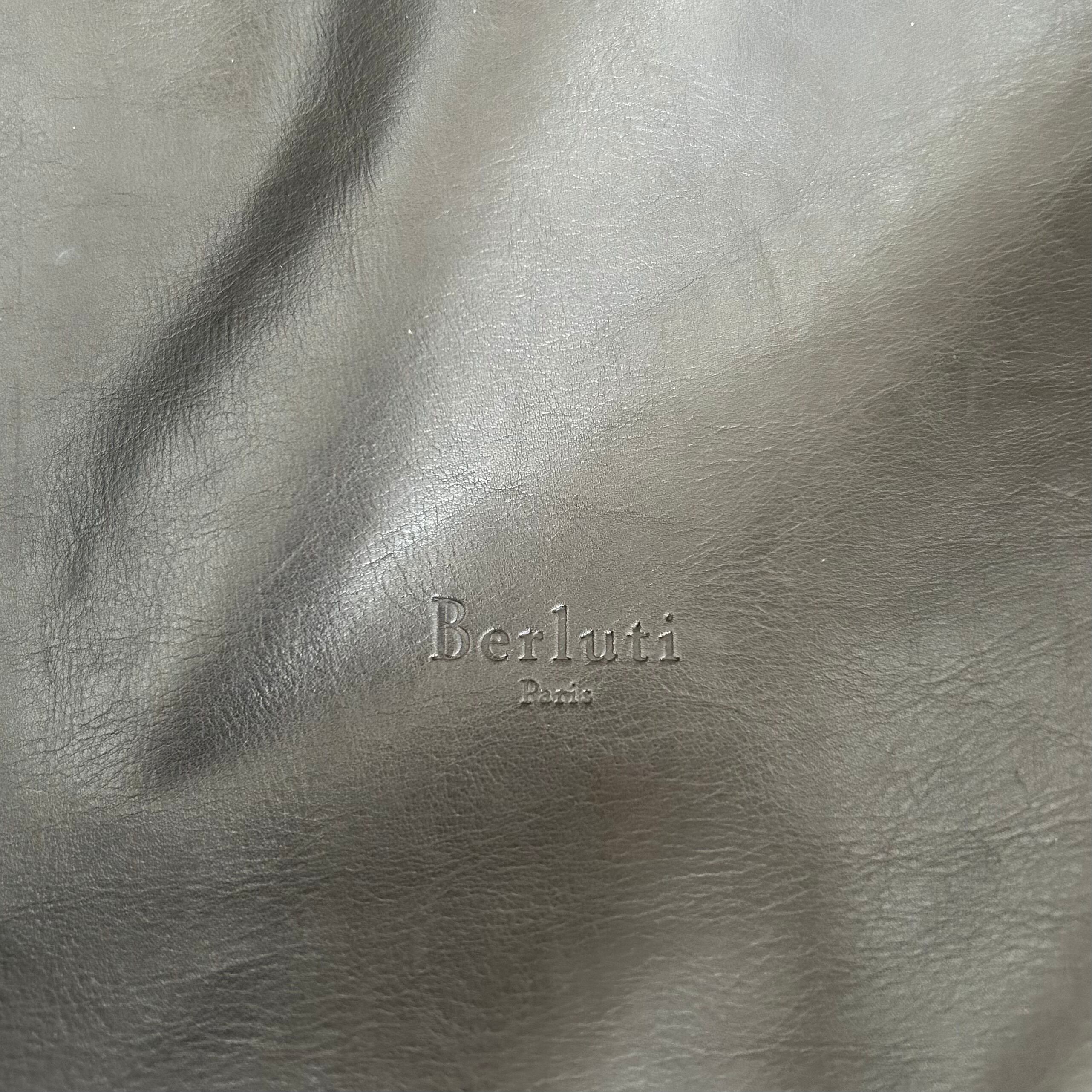 BERLUTI ベルルッティ カリグラフィ 2way レザー ショルダー トートバッグ グレー×ブラウン