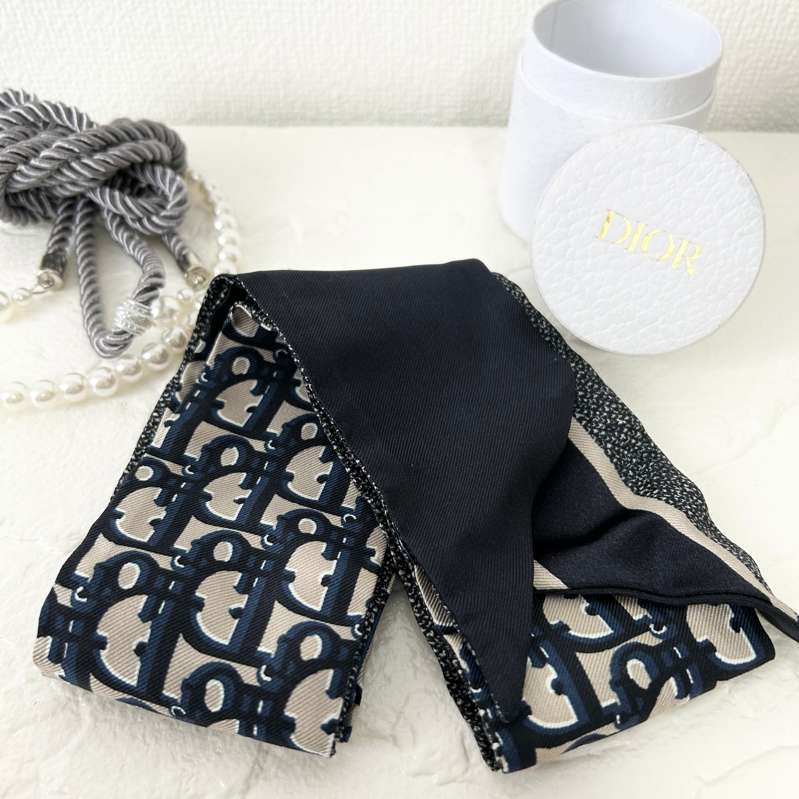 Christian Dior クリスチャン・ディオール オブリーク スカーフ ミッツァ シルク ネイビー