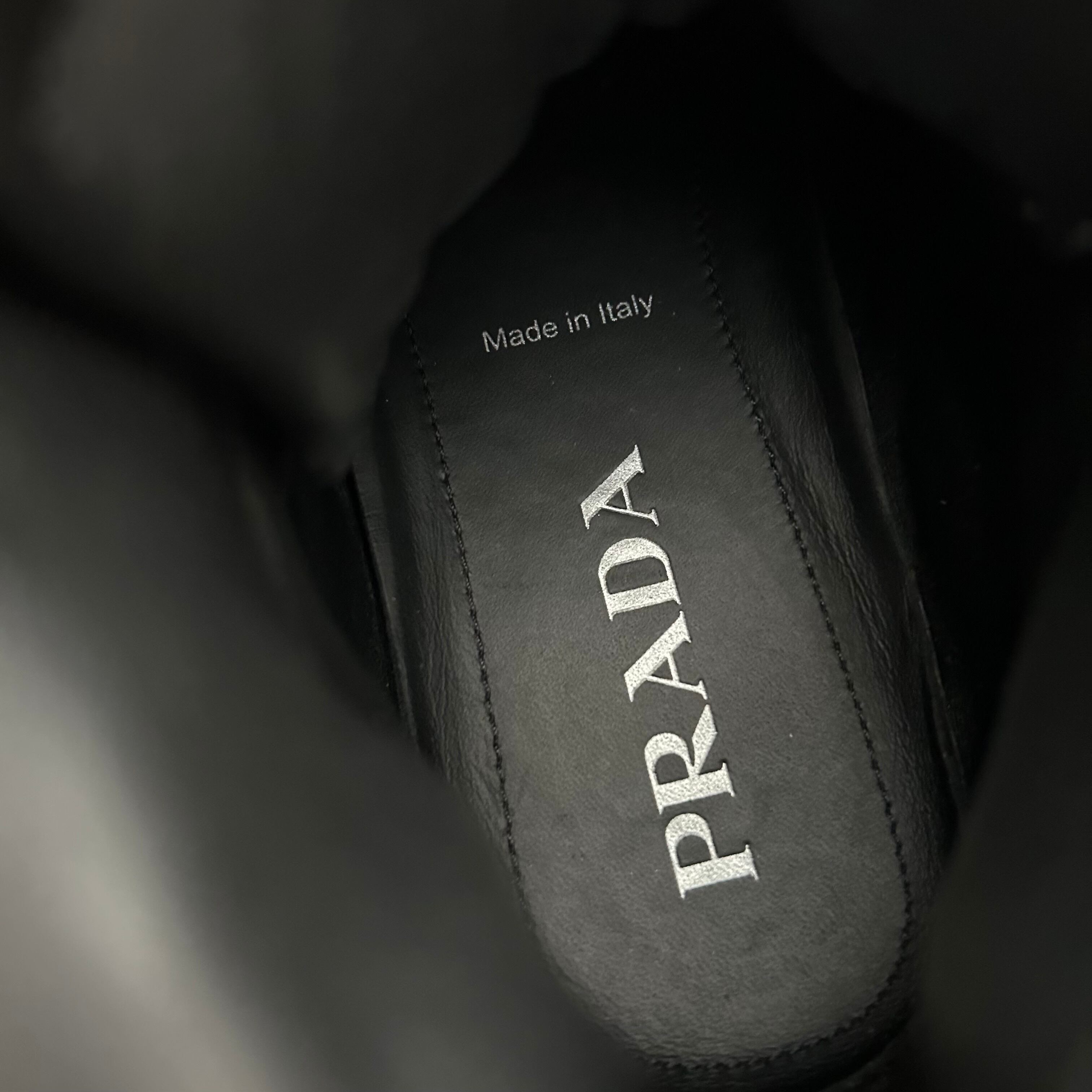 高級感あふれるブラックレザーが、スタイリッシュな印象を与えます。シンプルでありながらも、PRADAならではの独自のデザインが光ります。ハイカットデザインなので、足首までしっかりとサポートしてくれるので、長時間の歩行でも疲れにくいです。