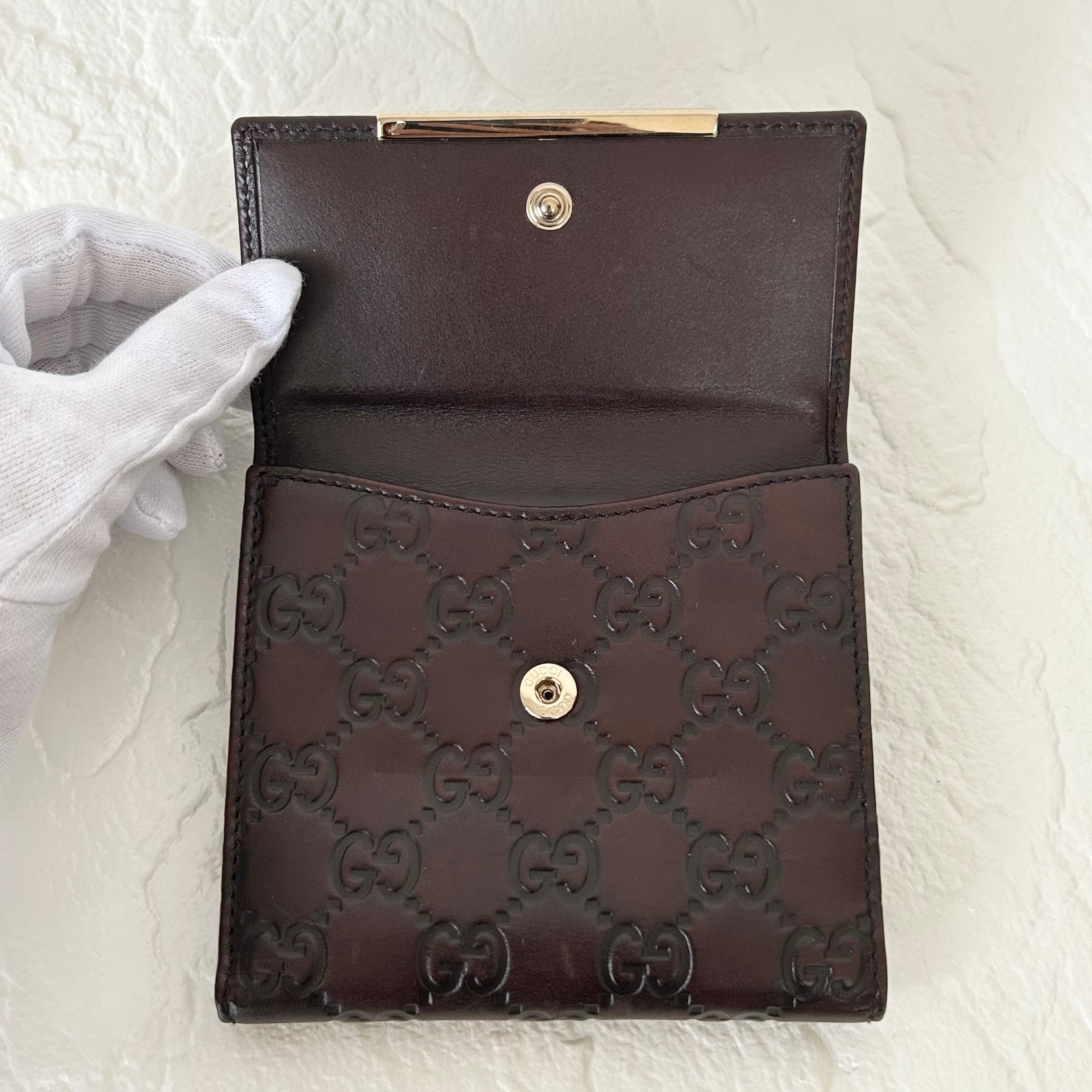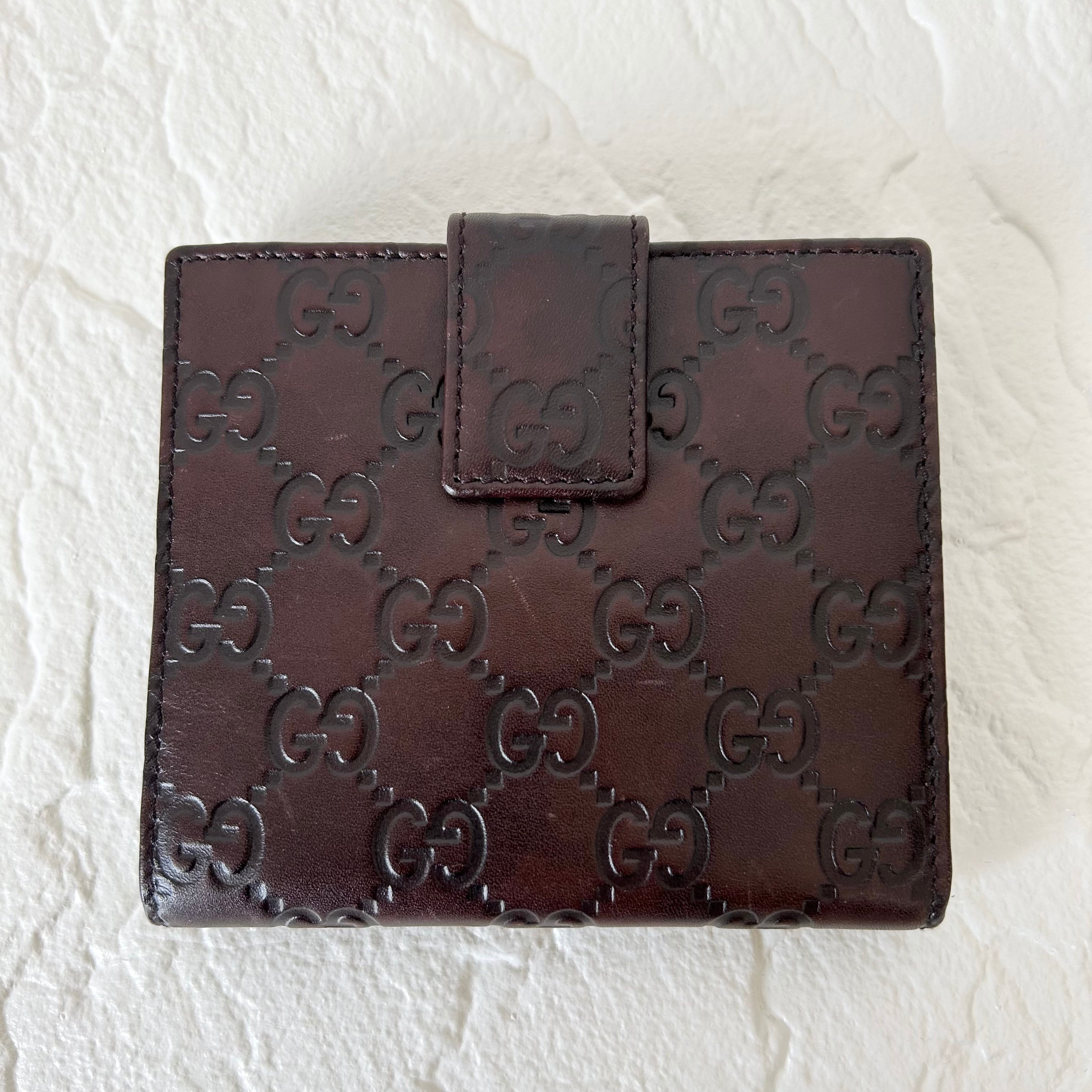 GUCCI グッチ シマ レザー ダブルホック 二つ折り財布 コンパクトウォレット ダークブラウン