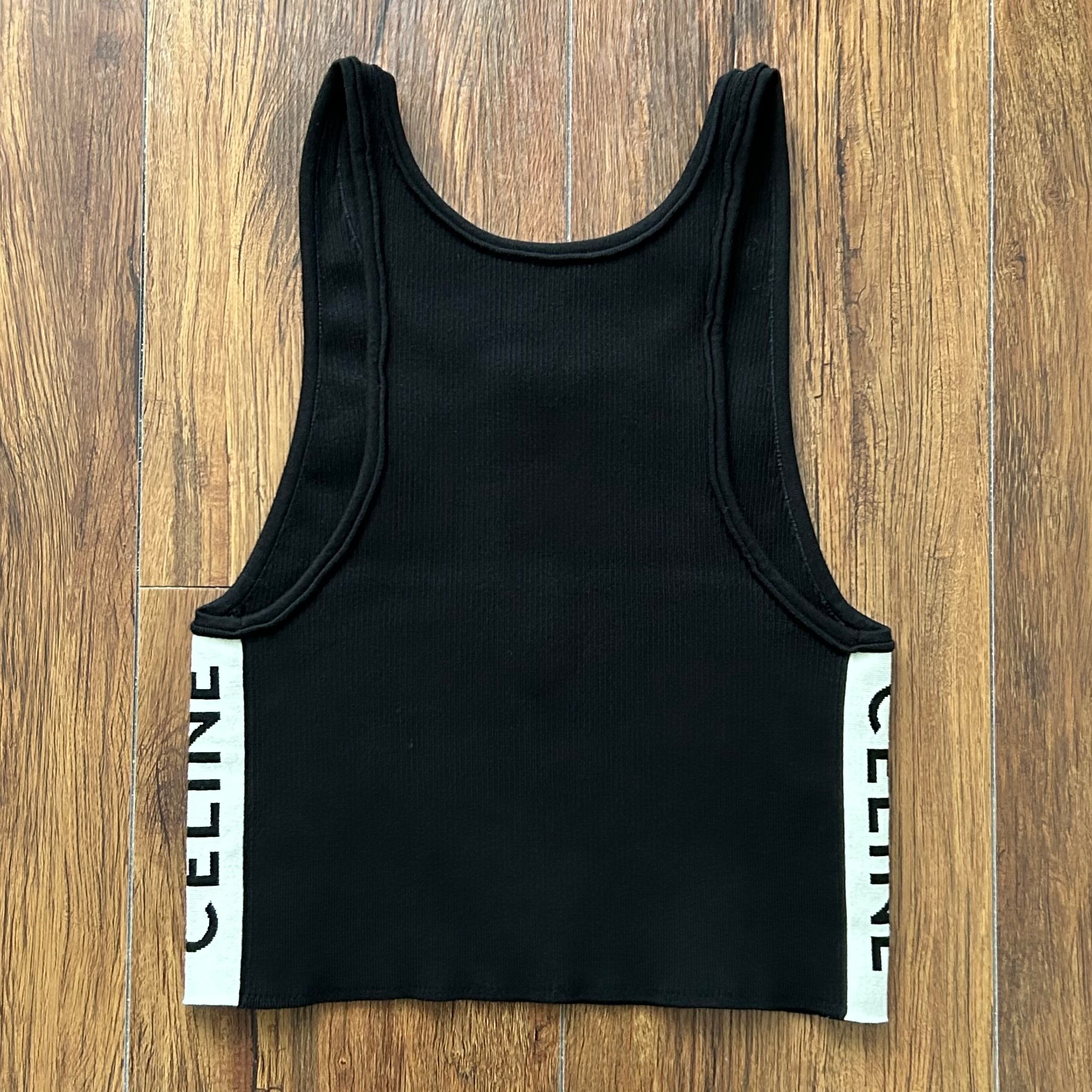 CELINE セリーヌ アスレチックニット ジップ付タンクトップ サイドロゴ 黒 XS